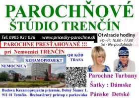 Dámska parochňa. Tento model je práve pre Vás. Je to krásna parochňa pre moderné ženy. Špičková kvalita, nádherný a moderný strih predurčuje túto parochňu na denné nosenie. Parochne sú trendové a vhodné pre zákazníčky ktoré majú vlasy, ale aj ženy bez vlasov ktoré majú kožné choroby, alopéciu alebo pre onkologických pacientov. Na túto parochňu sa už nedá uplatniť žiadna iná zľava. Parochňa je vyrobená z umelého vlasu-modacrylic fiber, Made in Japan. Návod na ošetrovanie Vám doručíme v balíku. Môžete si ho prečítať aj na našej stránke. Návod na umytie: Na jedno umytie mechanicky znečistenej parochne alebo príčesku použite približne 4 cl šampónu na 2,5 až 3 litre vody, ktorá nesmie mať teplotu nad 40 stupňov C. Parochňu alebo príčesok v takomto pripravenom kúpeli preplákame a necháme odležať približne 10 minút. Do druhej vody použijeme balzam a v tomto ho preplákame. Na záver nastriekame kondicioner, poprípade použijeme gel a lak na úpravu a zafixovanie účesu. Doporučujeme používať len prípravky ktoré sú určené na čistenie a úpravu parochne alebo príčesku zo syntetického vlasu. Osobne si môžete parochňu vyskúšať a zakúpiť aj v našom parochňovom štúdiu v Trenčíne. Parochňové štúdio Trenčín otvorené: pondelok-piatok. V sobotu otvorené po telefonickej dohode - 0905/931036. L-Štúdio Naše parochňové štúdio (kamenný obchod) sa nachádza na: Predajňa parochní je presťahovaná. Nová adresa: Parochňové štúdio Trenčín Dolný Šianec 1013/1, 91101 Trenčín, pri nemocnici, v budove Keramoprojektu. Parochňové štúdio sa nachádza na prízemí, bezbariérový prístup, parkovisko je hneď pri budove. Parochňové štúdio Trenčín oproti OD Prior, Vajanského 1, 91101 Trenčín, je presťahované a na tej adrese nás už nenajdete.